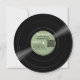 A retro vinyl record style round paper Save the Date card for your wedding with a soft greenlabel. This fun custom card features a vinyl record image on one side with an album title "Save the Date" in a retro script and your names. It has all the essential details: date, location, website (text and QR code).