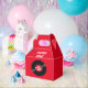 Send your guests home with this custom vinyl record favor box personalized with a name and age. At the party, whether displayed at each seat or on a favor table, these gable favor boxes make a vivid display. The bright red background for color pops and all the rockin' style of your rock and roll retro vinyl record theme birthday party. Such a cool way to say thank you to your guests and to add another nice visual to your birthday party theme and say thank you from the rock star guest of honor.