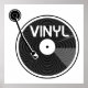 A black and white, vector illustration of a vinyl LP, record on a turntable or record player. A design for people who love the vinyl record format, D'j.s and other music fans.