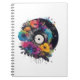Vinyl record with colourful flowers notebook