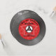 Invitation for a retro party with customisable text and changeable label colour with stars on jukebox vinyl record background. Great for retro themed birthdays, weddings, DJ, dadchelor or bachelor parties and several other occasions.