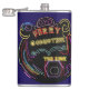 The flask itself is fine. It’s a cheap flask, obviously bought in bulk, however am prepared to overlook that. Given that it is a personalized item, I would have liked to have seen gift boxing instead of the generic packaging. Terrible printing, and/or quality. It’s a cheap, tacky vinyl. It is not cut straight and is also applied in a way that it is overhanging the bottom, causing the glue to catch on items and it will eventually roll and tear, damaging the wrap.