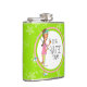 The flask itself is fine. It’s a cheap flask, obviously bought in bulk, however am prepared to overlook that. Given that it is a personalized item, I would have liked to have seen gift boxing instead of the generic packaging. Terrible printing, and/or quality. It’s a cheap, tacky vinyl. It is not cut straight and is also applied in a way that it is overhanging the bottom, causing the glue to catch on items and it will eventually roll and tear, damaging the wrap.