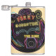 The flask itself is fine. It’s a cheap flask, obviously bought in bulk, however am prepared to overlook that. Given that it is a personalized item, I would have liked to have seen gift boxing instead of the generic packaging. Terrible printing, and/or quality. It’s a cheap, tacky vinyl. It is not cut straight and is also applied in a way that it is overhanging the bottom, causing the glue to catch on items and it will eventually roll and tear, damaging the wrap.