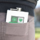 The flask itself is fine. It’s a cheap flask, obviously bought in bulk, however am prepared to overlook that. Given that it is a personalized item, I would have liked to have seen gift boxing instead of the generic packaging. Terrible printing, and/or quality. It’s a cheap, tacky vinyl. It is not cut straight and is also applied in a way that it is overhanging the bottom, causing the glue to catch on items and it will eventually roll and tear, damaging the wrap.
