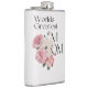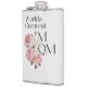 The flask itself is fine. It’s a cheap flask, obviously bought in bulk, however am prepared to overlook that. Given that it is a personalized item, I would have liked to have seen gift boxing instead of the generic packaging. Terrible printing, and/or quality. It’s a cheap, tacky vinyl. It is not cut straight and is also applied in a way that it is overhanging the bottom, causing the glue to catch on items and it will eventually roll and tear, damaging the wrap.