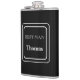 Vinyl wrapped flask is shown in a solid colour of black with a sample best man name.