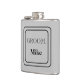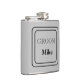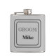 Vinyl wrapped flask is shown in a solid colour of silver with black colour text with a sample groom name.