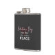 The flask itself is fine. It’s a cheap flask, obviously bought in bulk, however am prepared to overlook that. Given that it is a personalized item, I would have liked to have seen gift boxing instead of the generic packaging. Terrible printing, and/or quality. It’s a cheap, tacky vinyl. It is not cut straight and is also applied in a way that it is overhanging the bottom, causing the glue to catch on items and it will eventually roll and tear, damaging the wrap.