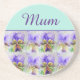 Viola Flower Aqua Stripe floral Mom Mothers Day Coaster