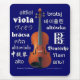 A beautiful Viola is surrounded by the word for viola in a myriad of different languages and an Alto Clef.