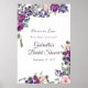 Elegant violet and plum floral watercolor floral wine tasting bridal shower welcome poster designed to be quickly and easily customisable to your event specifics.
