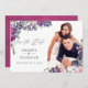 Elegant violet and plum floral magnetic wedding save the date card with hues of sage green and blush pink designed to be quickly and easily customised to your event specifics.