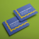 A wavy corner line in sunny, mustard yellow looks fresh and feminine on rich, violet blue with simple editable text for easy customisation making these business cards a design forward choice for any creative.