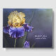 Beautiful wedding guest book done in an purple, blue and green water colour looking background, with stunning graphics of a purple and yellow coloured iris flower. Personalise the white text fields, on the front, to suit your needs. Matching Ultra Violet Iris wedding products are available.