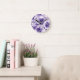 Violet Blooms Watercolor Purple Flowers Painted Round Clock