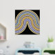 Beautiful contemporary violet, lavender, light purple, blue, and real gold foil coloured geometric abstract wave lines pattern on a black background. Elegant, stylish, and eclectic minimalism design for the artistic hip trendsetter, vintage retro art style, or abstract digital geometric motif lover. Match this design with your interior decor colours and decorate your wall with something exclusive and unique on your wall!