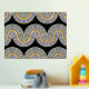 Beautiful contemporary violet, lavender, light purple, blue, and real gold foil coloured geometric abstract wave lines pattern on a black background. Elegant, stylish, and eclectic minimalism design for the artistic hip trendsetter, vintage retro art style, or abstract digital geometric motif lover. Match this design with your interior decor colours and decorate your wall with something exclusive and unique on your wall!
