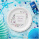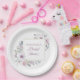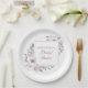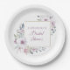These beautiful bridal shower paper plates feature a faux gold geometric frame of watercolor blush, soft purple, and white flowers with plenty of botanical leaves and elegant light purple calligraphy.