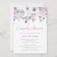 These beautiful couples shower invitations feature watercolor blush, soft purple, and white flowers with plenty of botanical leaves and elegant light purple calligraphy.