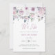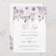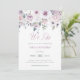 These beautiful floral wedding invitations feature watercolor blush, soft purple, and white flowers with plenty of botanical leaves and elegant light purple calligraphy.