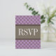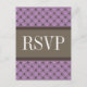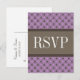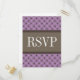 Trendy and chic Fancy Lattice Wedding RSVP Postcard featuring a stylish circle and diamond studded pattern over a vibrant purple background with a broad two-toned brown border. This elegant RSVP card is perfect for a modern wedding. Easy to customise, simply add your wedding details in the text fields provided. Click "Customise It" to find more personalisation options.