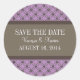 Trendy and chic Fancy Lattice Save the Date Stickers featuring a stylish circle and diamond studded pattern over a vibrant purple background with a broad two-toned brown border. These elegant save the date stickers are perfect for announcing your modern wedding. Easy to customise, simply add your wedding details in the text fields provided. Click "Customise It" to find more personalisation options.