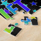 This exciting and lively birthday-themed jigsaw puzzle design features the message "HAPPY BIRTHDAY, VIOLET" with the characters having a colourful rainbow spectrum inspired gradient pattern, in addition to a fun star field background pattern. An exciting puzzle like this might be used to send birthday wishes to somebody named Violet. [~Z0000468]
