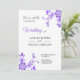 Decorative ultraviolet flower design in on white wedding invitations with customisable text