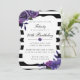 Classy, sophisticated and modern watercolour blooming purple violet florals and black and white stripes birthday party invitation. The design features vibrant and regal shades of ultra violet, purple, plums, lavender and trendy black and white stripes. Bold floral silhouettes and feminine details are artfully crafted in our ultra violet inspired blooming floral, black stripes invitation. The bold blooming florals are artfully arranged together to create a bold and dynamic floral bouquet. All of our florals are hand-painted original artwork by Moodthology. The invitation is completely customisable with your own information. You can customise the text size, text colour, font and layout for your own personal design preference.