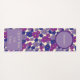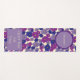 Quiet time for yoga, violet flowers in blue, mauve and purple. A place for your name. Repeat surface pattern. Colourful and traditional blooming flowers. Can be personalised.