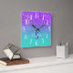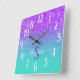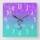 Violet Glitter Turquoise Ombre Monogram Square Wall Clock