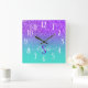 Create your own personalised monogram faux violet purple glitter and turquoise ombre wall clock.