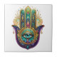 Violet Green Gold Petals Hamsa Turquoise Third Eye Ceramic Tile