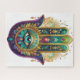 Violet Green Gold Petals Hamsa Turquoise Third Eye Jigsaw Puzzle