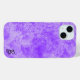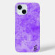 Features a random vibrant violet watercolor and ink splatter messy design on a light violet background. Personalise with an initial.
