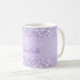 A violet, lilac colored background with confetti. Personalize and add a name. The name is written with a modern, elegant hand lettered style script.