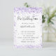 A modern, elegant wedding program, timeline. A white background decorated with violet, lavender coloured confetti. Personalise and add your names and wedding details. Black coloured letters. If you have more text it's possible to reduce the line space.