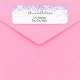A white background. Decorated with violet, lavender coloured confetti. Personalise and add your name and address. Perfect for a bridal shower, baby shower or birthday party invitations.