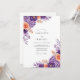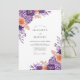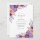 This elegant design features a vibrant arrangement of violet hydrangeas and soft peach roses in a delicate watercolor style. Lush lavender sprigs and bright orange berries accent the composition, creating a romantic and balanced botanical aesthetic. Ideal for a sophisticated spring or summer event, the artwork showcases rich textures and a refreshing seasonal palette.