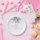 Violet Peach Pastel Roses Geometric Bridal Shower Paper Plate