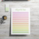 Personalised notes in white with colour boxes in pastel colours ranging from violet to pink to peach to yellow to lime for your lists or notes. Add your name in a lime green calligraphy script.