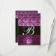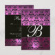 VIOLET PURPLE BLACK DAMASK MONOGRAM RSVP white Card