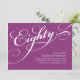 This elegant 80th birthday invitation has a violet purple and white modern design, and is fully customisable. A great invite for a formal or casual party.