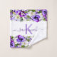 Two elegant borders of violet, lavender coloured, purple and white flowers, pansies on an elegant white background. Personalise and add your name and monogram letter, initial. Purple coloured letters. The name is written with a modern hand lettered style script with swashes. To keep the swashes only delete the sample name, leave the spaces or emoji's in front and after the name.