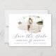 Violet Purple & White Romantic Brushed Frame with Photo Chic Save the Date Thin Magnetic Card. With luxury marble texture back, elegant calligraphy Script font plus slim line serif! Edit yours today with your names, date and photo!