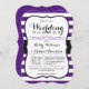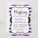 Elegant, formal Violet Purple and white stripes, striped pattern couples wedding shower invitation with black fonts and white hearts on back. Perfect year round classy invite for spring, summer, fall, or winter engagement, couples wedding showers. Bracket shape invite for stylish vintage look.