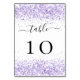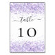 A stylish white background decorated with purple, violet, coloured faux glitter, sparkles. Personalise and add your table numbers. Add your numbers one by one.
