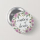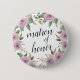 Identify the key players at your bridal shower with our elegant, sweetly chic floral buttons. Button features pink and violet purple watercolor flowers and green leaves,  with "matron of honour" inscribed inside in calligraphy script.