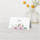 Chic watercolor floral place card or table card design features a spray of pastel violet purple watercolor flowers and green botanical foliage. Space provided for guest name and table number. Personalise the back with your initials and wedding date. Designed to match our Violet & Sage wedding and event collection.